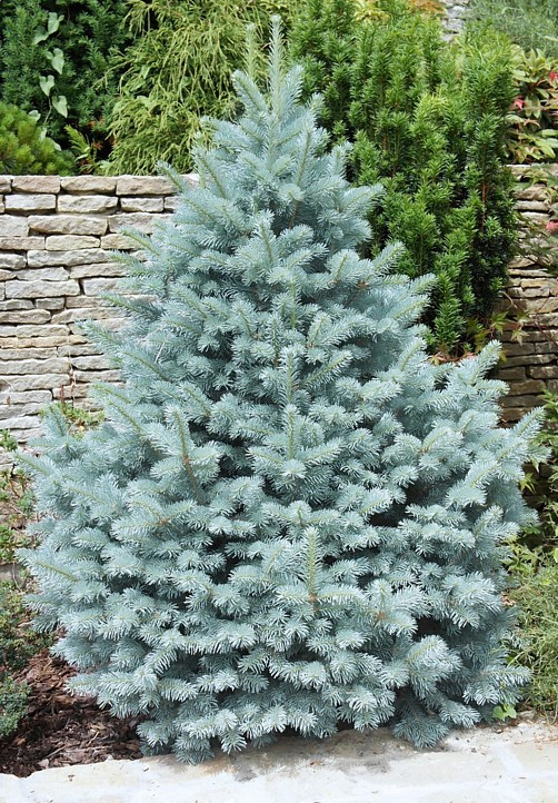 Использование в дизайне: Благодаря своей красивой правильной формы кроне очень популярная в ландшафтном дизайне. Такая ель станет настоящей изюминкой любого сада, парка, усадьбы. Эффектно смотрится как в одиночных посадках, так и групповыми посадками. Может использоваться в качестве живой изгороди. Популярный сорт для украшения в новогодние праздники.