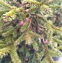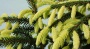 Хвоя короткая, темно-зеленая, блестящая. Весной молодые приросты имеют золотисто-желтую окраску, летом они становятся зелеными. Иголки короткие, жесткие.