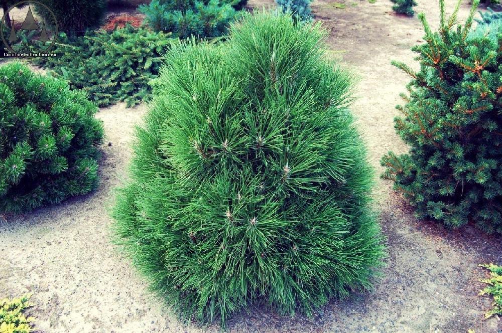 ОписаниеЦенный сорт, достоин особого внимания. Карликовая полусферическая форма, растёт медленно, к 10-ти годам высота 90 см, ширина 110 см. Хвоя необычайно густая, очень длинная, тёмно-зелёная. Место солнечное. Используется в одиночных посадках и в композициях.