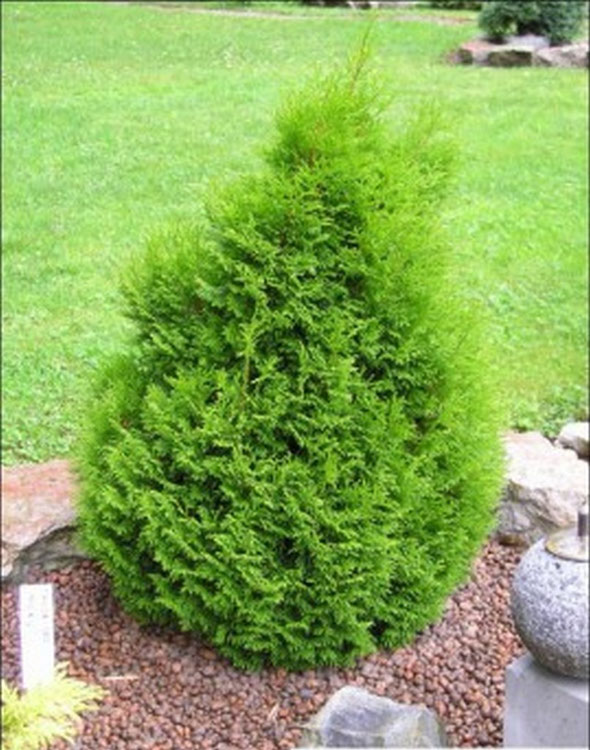 Интересный конусовидный сорт, медленнорастущий, достигает в 10 лет около 1м. высоты.