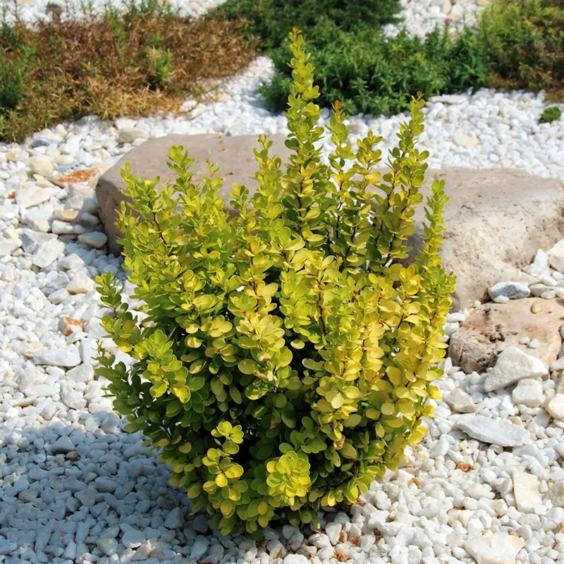 Барбарис Санбим это красивый сорт барбариса с компактной колонновидной формой и жесткими побегами. Он достигает высоты около 120-150 см. Молодые приросты имеют лёгкий красноватый оттенок. Листья большие, жёлтые, осенью приобретают ярко-красный цвет. Растение хорошо переносит стрижку и устойчиво к морозам. Предпочитает солнечные места. Подробнее