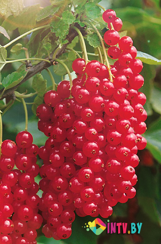 Смородина красная располагает плотными, дуговидными, растущими вниз кистями. Плоды имеют насыщенно-красный цвет и круглую форму. Нежные и сочные, практически одинаковые по размеру, от 0,6 до 0,8 г ягоды с малым количеством семян наделены кисло-сладким привкусом. Дегустационный балл высокий — 4,8 из 5.