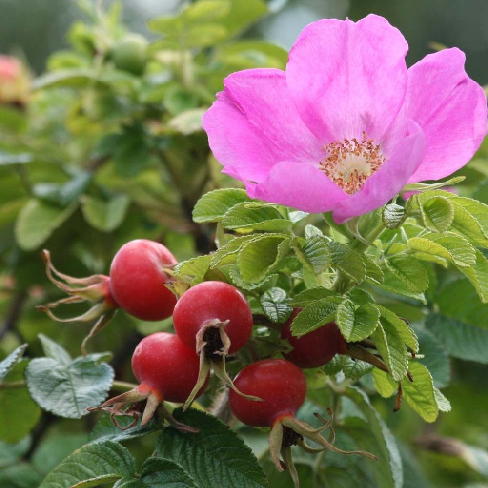 Шиповник — это необыкновенно красивый декоративный кустарник, в высоту достигающий около 2–2,5 м. Своё название - роза морщинистая, она получила благодаря своим листикам, которые, в отличие от шиповника обыкновенного, имеют не гладкую, а рифлёную поверхность. Цветы у этой розы появляются в начале лета. Сначала их очень много, затем чуть меньше, но они есть всегда, до самых холодов.